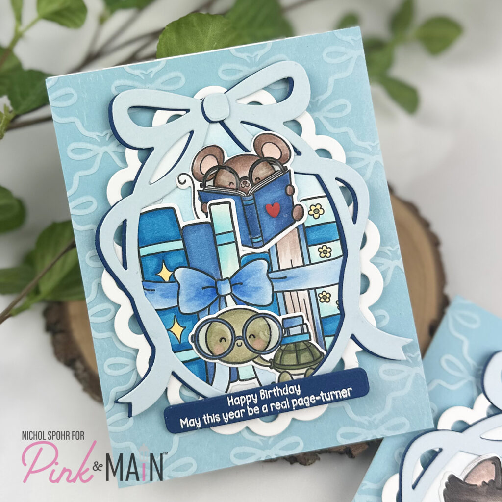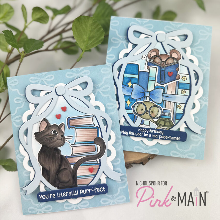 The Pink & Main April 2026 release is here, and I had so much fun creating a couple of cozy, book-themed cards during today’s Friday Live! These designs feature stacked books paired with the sweetest critters for a charming, storybook feel. I combined Olo coloring with an embossing folder background using my favorite white pigment ink technique for added texture and detail. To finish everything off, those gorgeous bow frames tie the entire design together beautifully. You can watch the full replay below to see all of these techniques in action and get a closer look at the finished cards!
