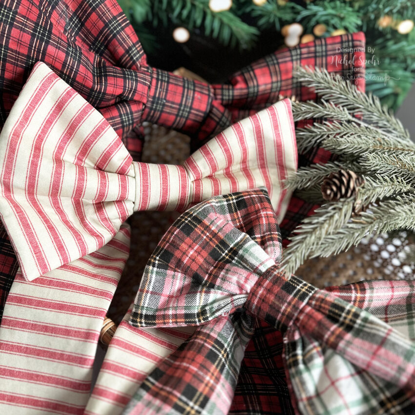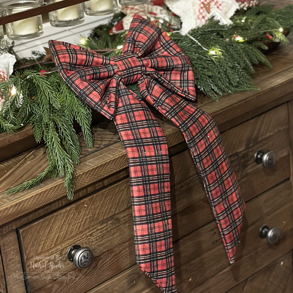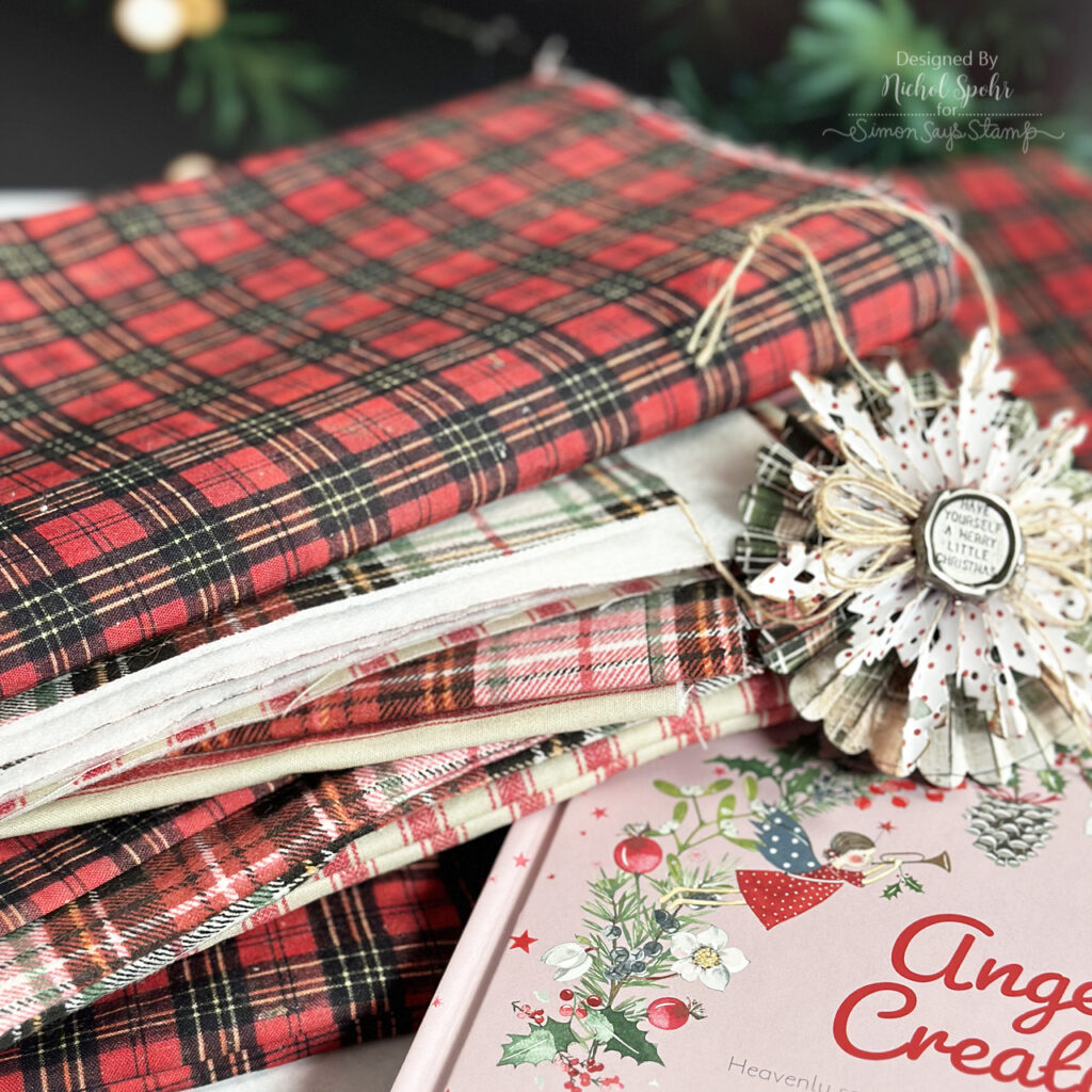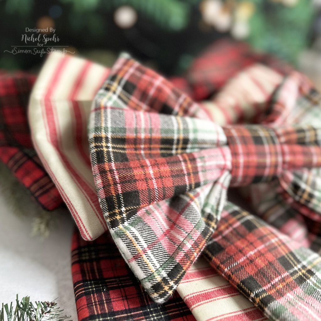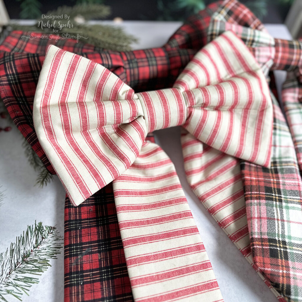 Happy Thursday, friends! Today I’m sharing some absolutely delightful fabric bows created with Tim Holtz’s incredible fabric collections for FreeSpirit Fabrics. His seasonal lines are some of my all-time favorites, and between now and Christmas I’ll be featuring several projects using these festive designs. To kick things off, I created three sizes of bows, small, medium, and large, using the Accufactum Angelic Creations book. What makes these bows extra special is their construction: fusible fleece in all the components, plus a touch of quilt batting in the bow loops gives beautiful structure, making them perfect for wreaths, garlands, doors, hooks, and so much more. I added a bit of Tim Holtz velvet ribbon to the back of each bow for an invisible hanger, and the results are just charming. The medium and large bows were made with current holiday fabrics (restocked at Simon Says Stamp!), while the small bow features a flannel from a past release, easily swapped with any of Tim’s current holiday prints.