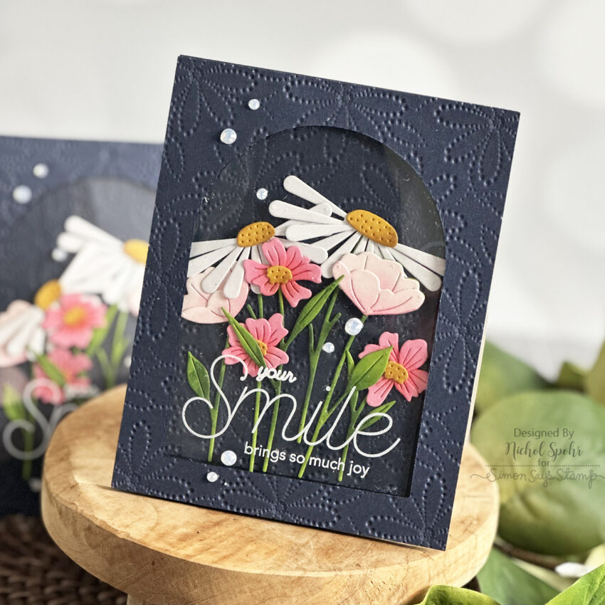 This floral beauty was created during my YouTube Friday Live using brand-new products from theĀ Simon Says Stamp Friend Like You release. I layered a gorgeous garden of blooms behind an acetate window stamped with the perfect sentiment.