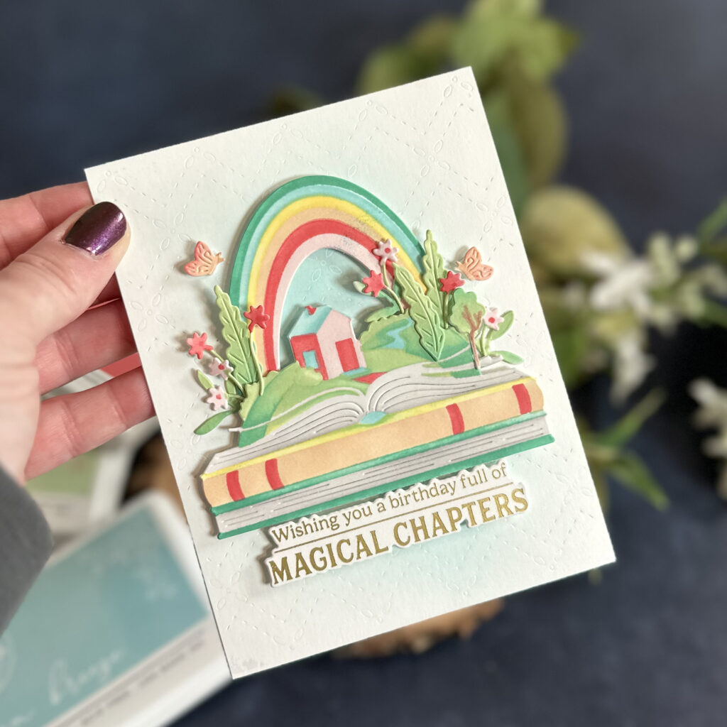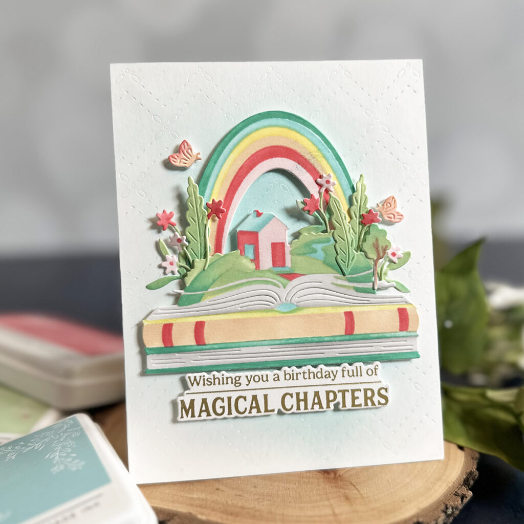 You know that if there’s a book involved, I’m instantly smitten—and today’s project is no exception. I created a bright and colorful book-themed birthday card that celebrates all things storybook.