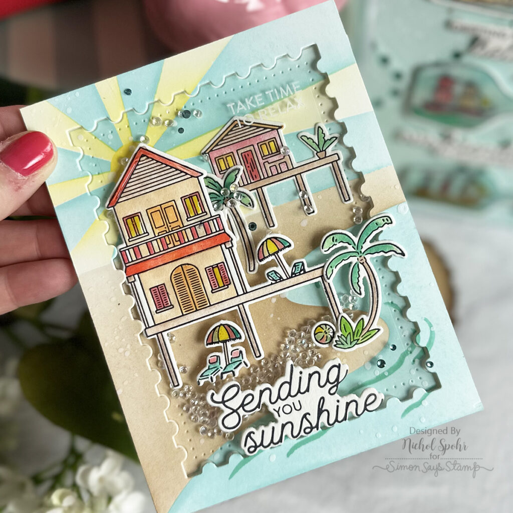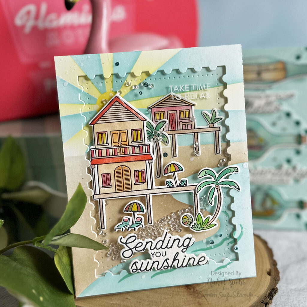 You used one of the sets I really like: Sippable Scenes. Such a fun set and you used a really unique background. The Coastal Paradise card is crazy good with all the details you have. Looks like a shaker card, but it is not. You must have had fun making that one-even though it involved a number of steps.