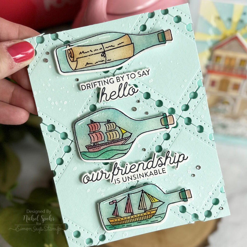 Nichol, your cards are awesome! I love the ship in the bottle the most, but your beachy card is wonderful too. This latest release from PFS is terrific! Thanks for the inspiration.