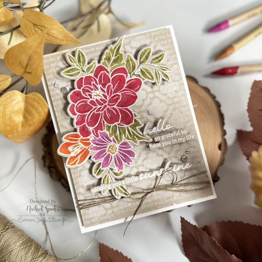Day 10 of STAMPtember® brings us the Joyful Bouquet set from Altenew! This limited edition exclusive is full of stunning florals and versatile sentiments. I created a kraft-on-kraft design with Distress Pencils, layered stenciling, and background text for a textured look you’ll love.