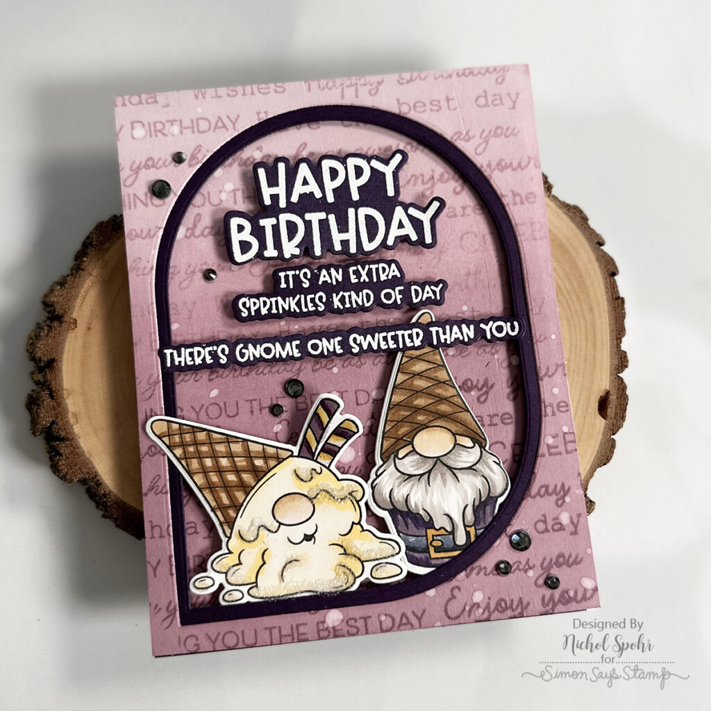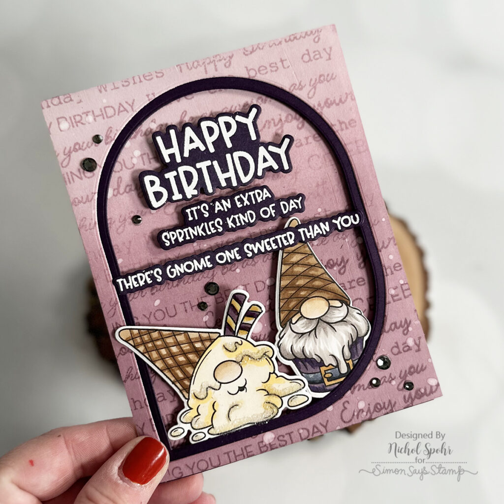 This limited-edition set is available only while supplies last—once it’s gone, it’s gone for good. I created a sweet birthday card featuring the adorable gnomes plus a few of my favorite Simon Says Stamp products.