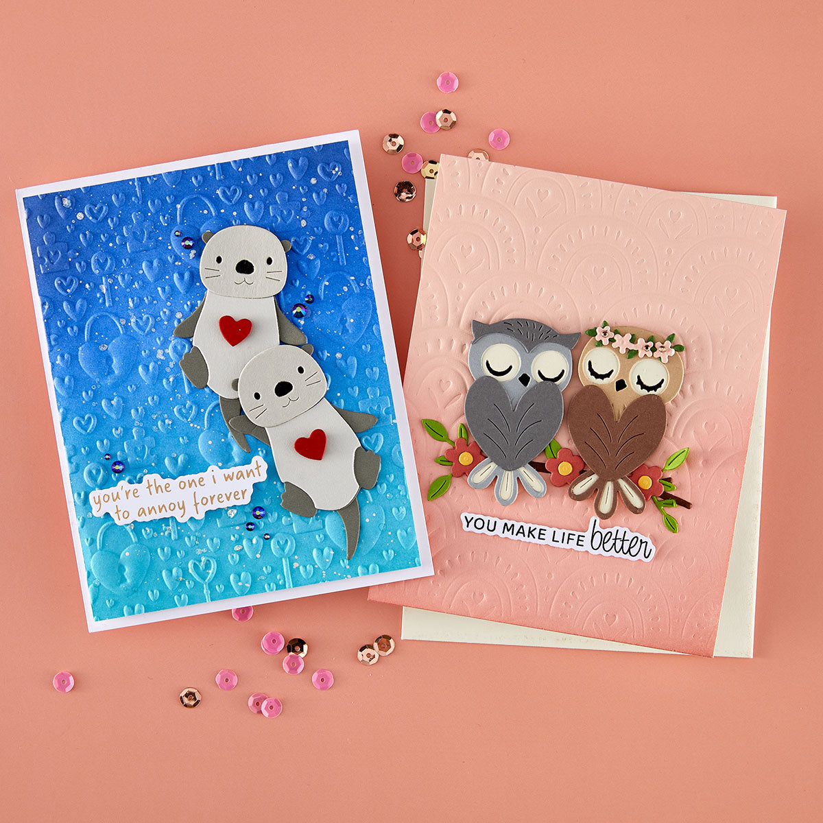 In this Spellbinders December/January Club-A-Long live replay, I’m sharing three sweet and simple cards created with the December Clubs, all centered around the idea of friendship and togetherness. Each card features an adorable pair: a set of owls, playful otters, and a cozy duo of stitched mugs. These designs are perfect for friendship cards, everyday greetings, or anytime you want to celebrate connection. All of the products used are from the December clubs, which are available for purchase now, and the full YouTube live replay is linked below so you can craft along or watch anytime.